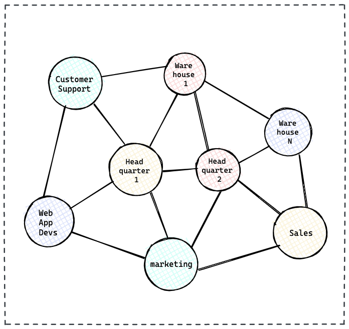 A Decentralised system architecture is one where no single entity/node owns the whole network. Instead the decisions are made collectively by all the members through a consensus process. In addition to being distributed, a decentralised system has a lot more to offer like making the network resilient to failure. Considering above example, our business which is highly distributed and robust is faced with a different degree of damage like a malicious actor getting hold of our headquarters and thus compromising user’s trust in the company or the company goes bankrupt/shuts down. Although the system architecture is distributed, it can still become a pain when the ownership is centralised. With Decentralised system architecture, this can be solved by distributing the ownership among the entities so even when one of the node/entity is compromised, other nodes can fill in of it’s behalf. Another thing to note here is: